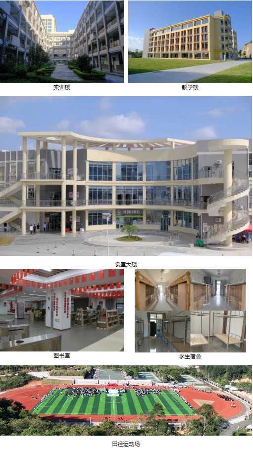学校坐落于海上丝绸之路起点、中国著名侨乡南安市,依山傍水,风光旖旎,校区现有占地面积350多亩,已建有教学楼、办公楼、图书馆、实验室、实训楼、学生宿舍楼、教师公寓、食堂、运动场等。教学设施设备完善,较好地满足师生教学生活需要。